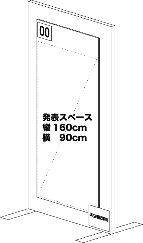 (原則発表前に掲示、発表当日に撤収となります。優秀演題については発表前に貼付後、撤去の時間まで可能な限り掲示をお願いします) - 発表スペースの大きさは縦160cm、横90cmです。発表内容はボードから離れても判読できるよう見やすくしてください。文字や図表も十分読み取れる大きさにしてください。