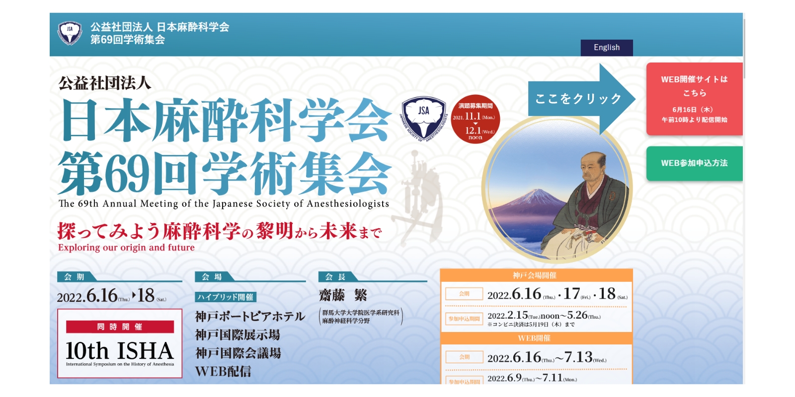 本ホームページの右側に表示されている「WEB開催サイトはこちら」のフローティングバナーよりサイトへお入りいただけます。