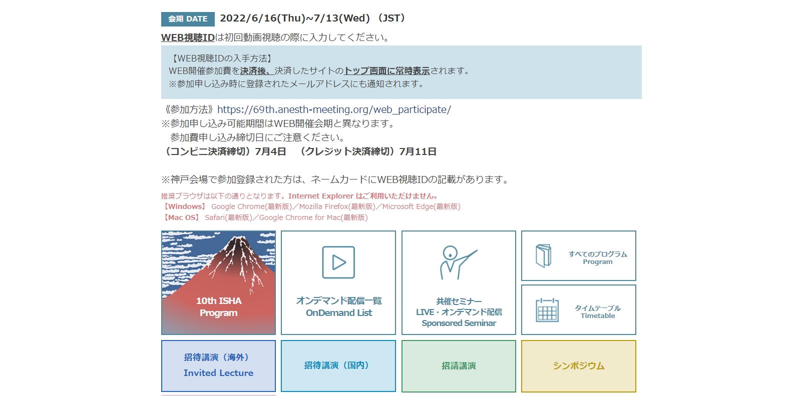 WEB配信、発表内容に関して異議等が寄せられた場合、運営事務局の判断で配信を中止する場合がありますので、ご了承ください。
