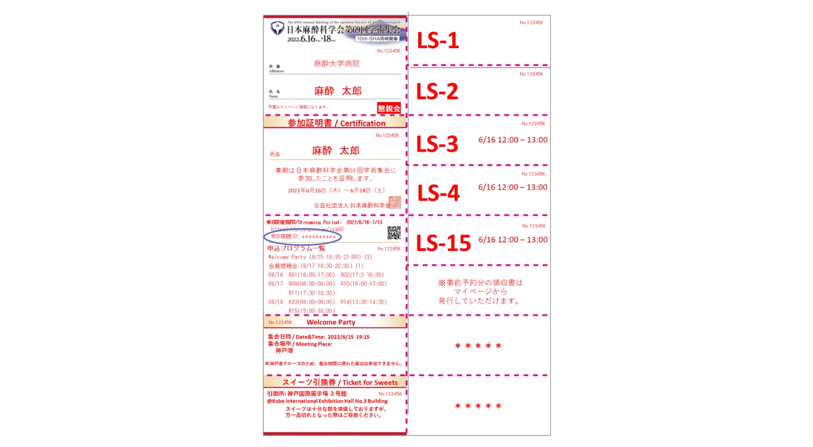 総合受付にて参加登録後に発行されるネームカードに、WEB視聴用IDが記載されています。